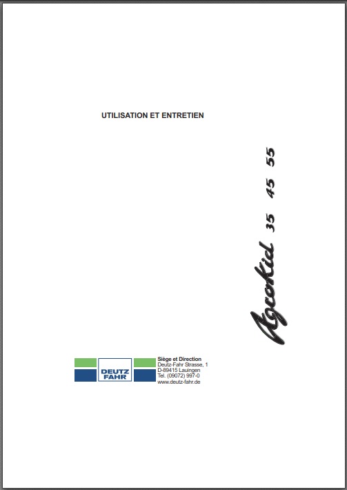 Livret d’utilisation et d’entretien pour tracteur Deutz Fahr