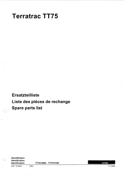 Catalogue pièces détachées numérique pour tracteur de pente Aebi Terratrac TT 75