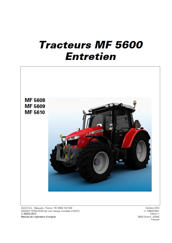 Manuel d’entretien numérique pour tracteur Massey Ferguson MF 5608 5609 5610