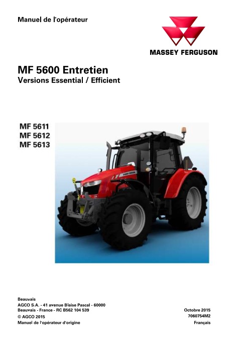 Manuel d’entretien numérique pour tracteur Massey Ferguson MF 5611 5612 5613