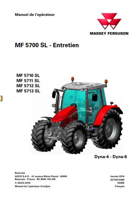 Tracteur MF 5710 5711 5712 5713 SL Manuel d’entretien Massey Ferguson numérique