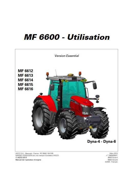 Manuel d’utilisation numérique pour tracteur Massey Ferguson MF 6612 6613 6614 6615 6616 Dyna-4 et 6 Essential