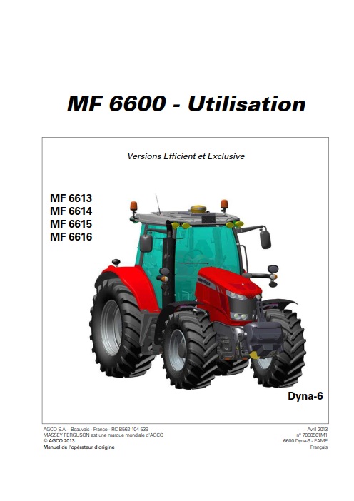 Manuel d’utilisation numérique pour tracteur Massey Ferguson MF 6612 6613 6614 6615 6616 Dyna-6 Efficient -Exclusive