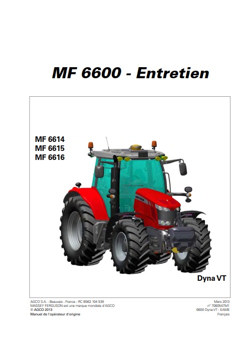 Manuel d’entretien numérique pour tracteur Massey Ferguson MF 6614 6615 6616 Dyna-VT
