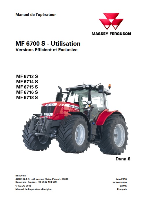 Manuel d’utilisation numérique pour tracteur Massey Ferguson MF 6713 6714 6715 6716 6718 S Dyna-6 efficient exclusive