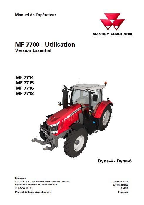 Manuel d’utilisation numérique pour tracteur Massey Ferguson MF 7714 7715 7716 7718 Dyna-4 Dyna-6 essential