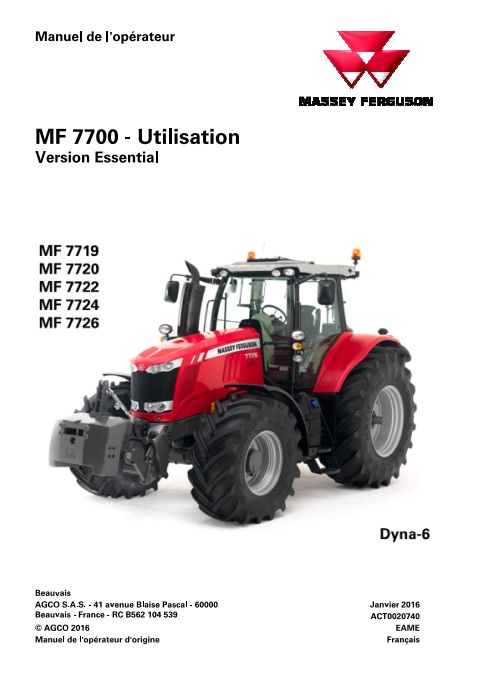 Manuel d’utilisation numérique pour tracteur Massey Ferguson 7719 7720 7722 7724 7726 Dyna-6 Essential