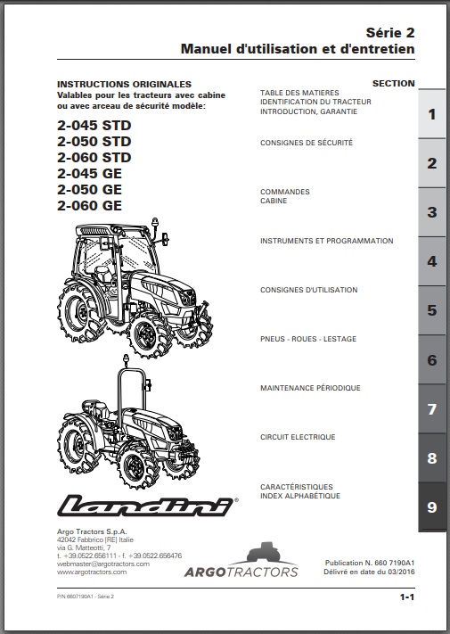 Livret d’utilisation et d’entretien pour tracteur Landini.